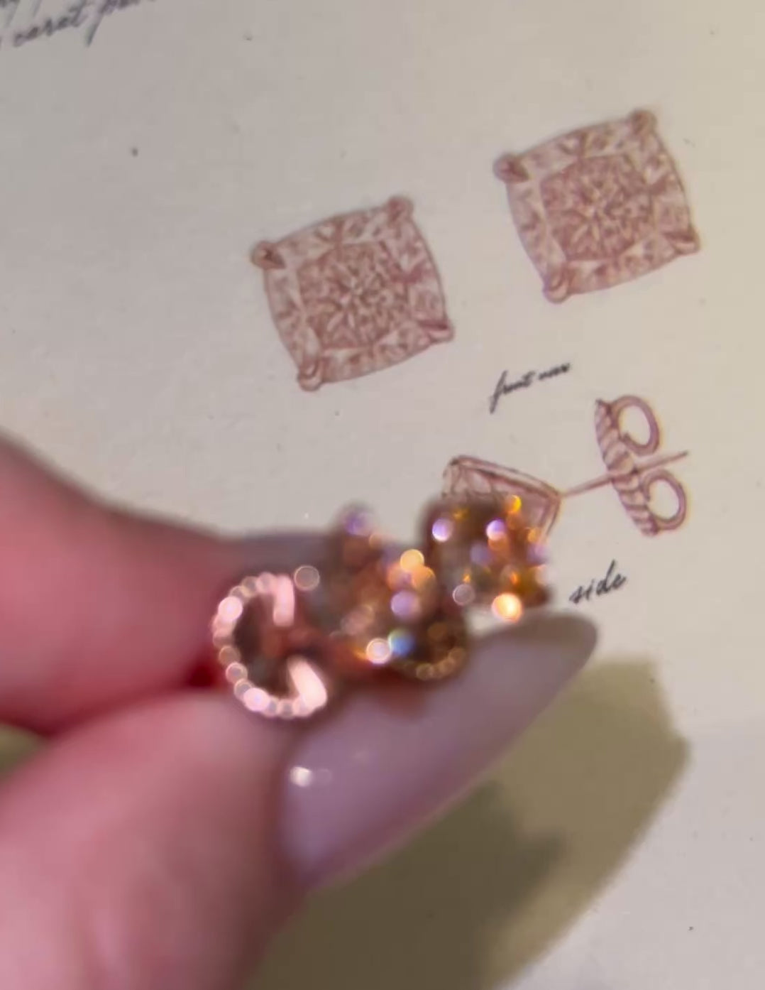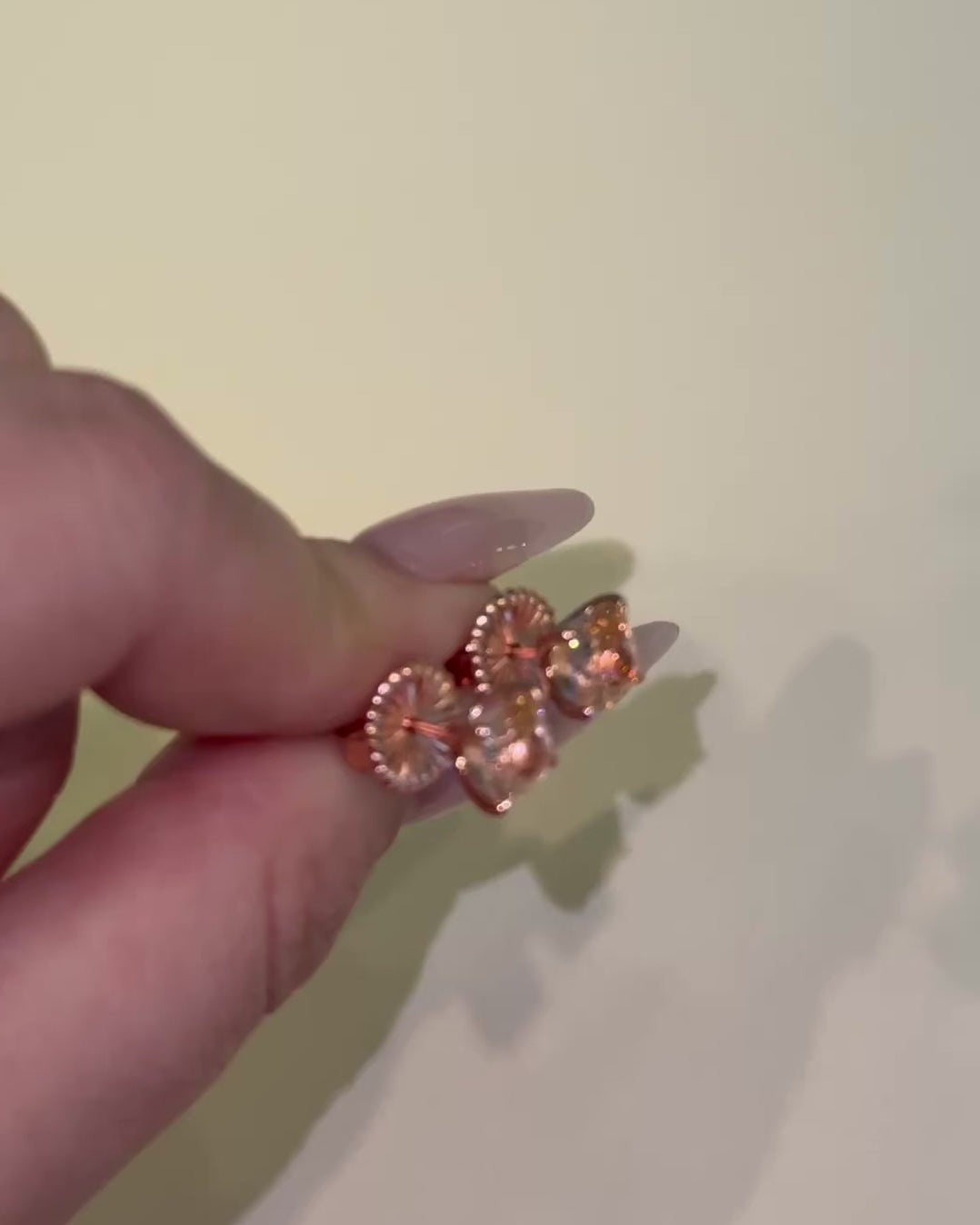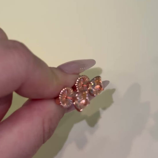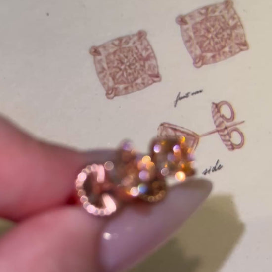 The timeless classic, our four carat solitaire earrings are the finest there are! Perfect rose pink cushion cut cubic zirconias are custom made to the highest fine jewelry industry standards, made to look JUST like the real thing! Measuring 7mm (2 carats each) dazzling in a pointed four prong rose gold setting. Our beautiful skirt backs are custom designed to keep the earrings perched perfectly on your ears with a touch of elegance.